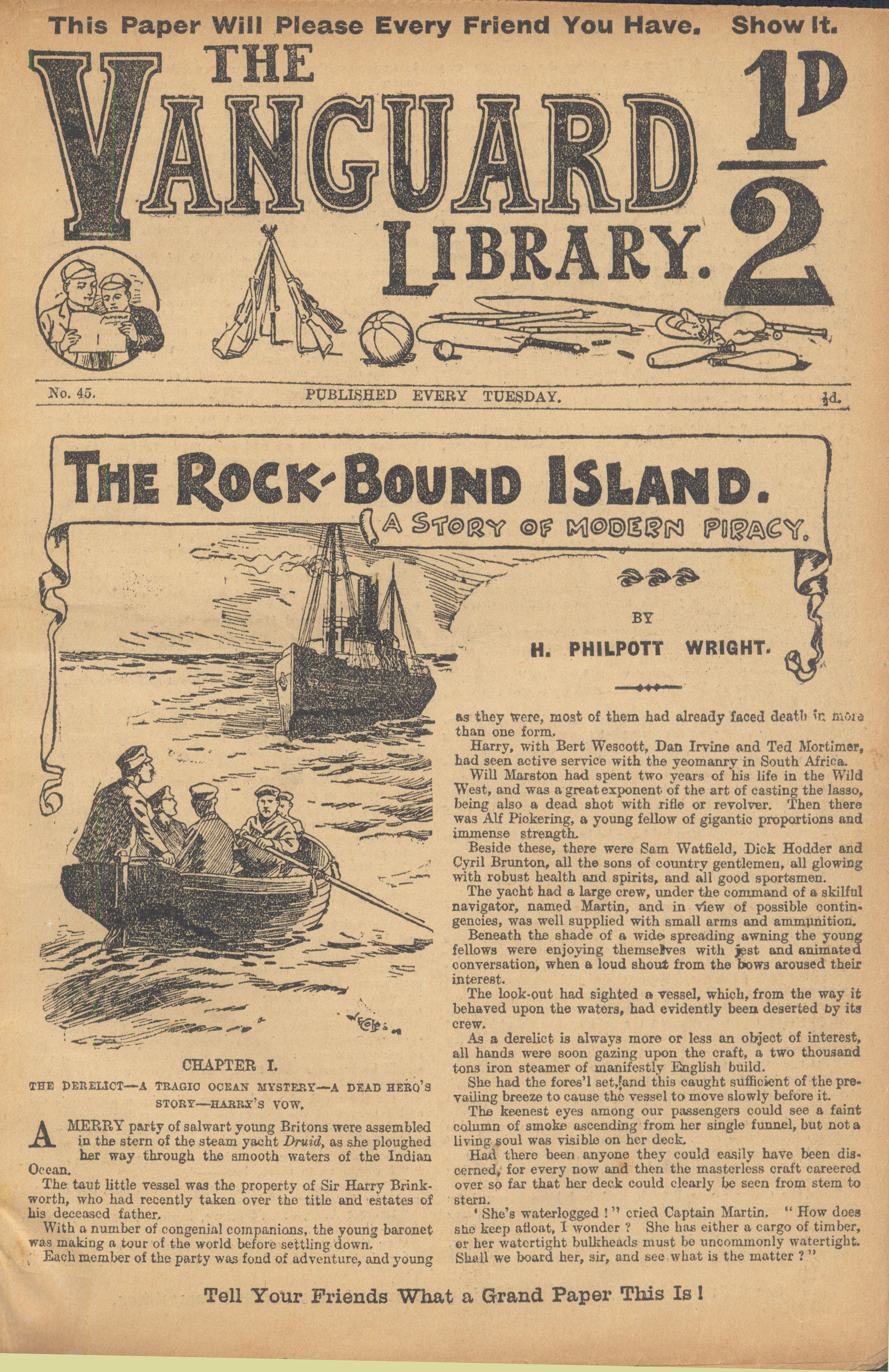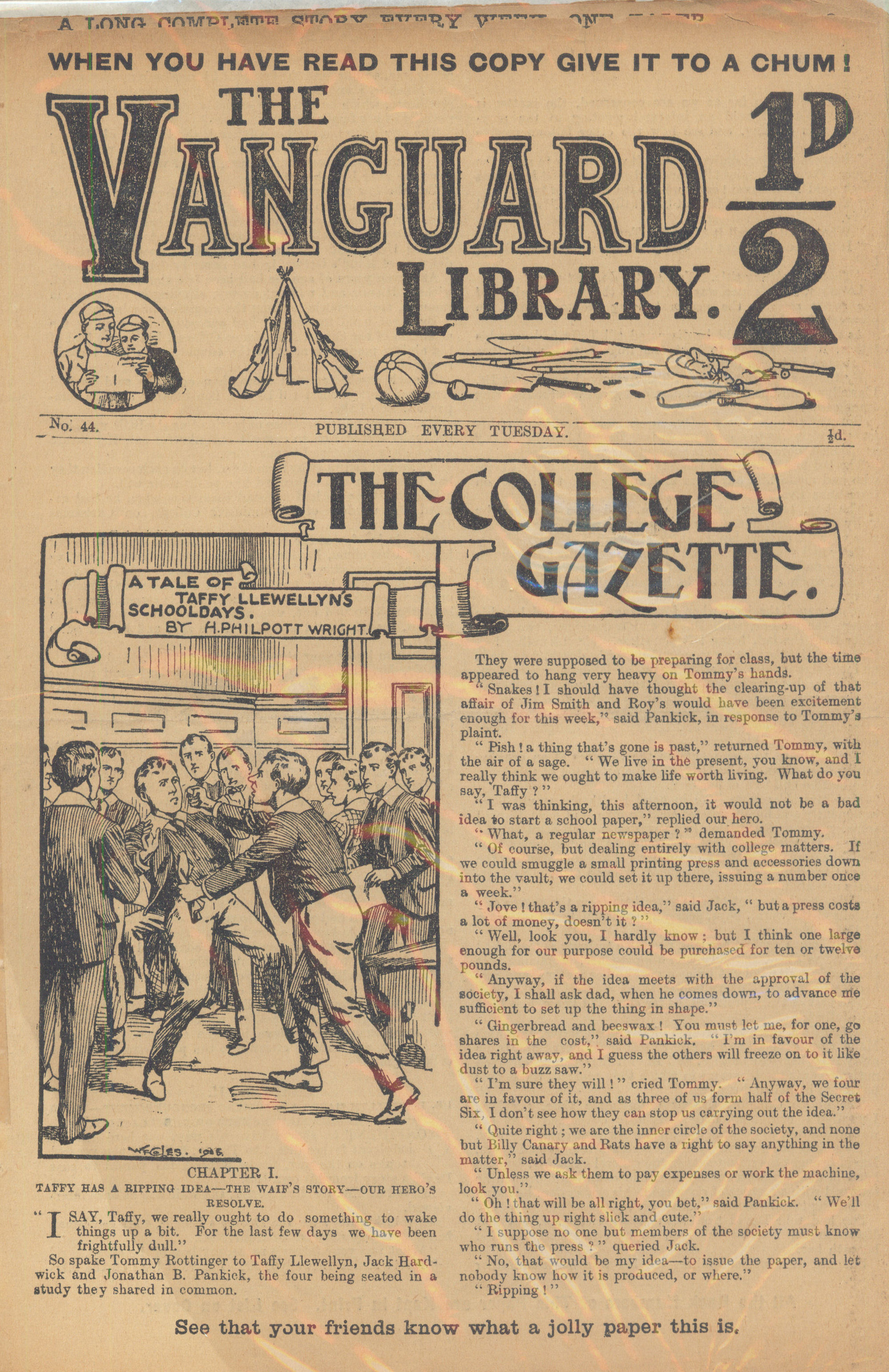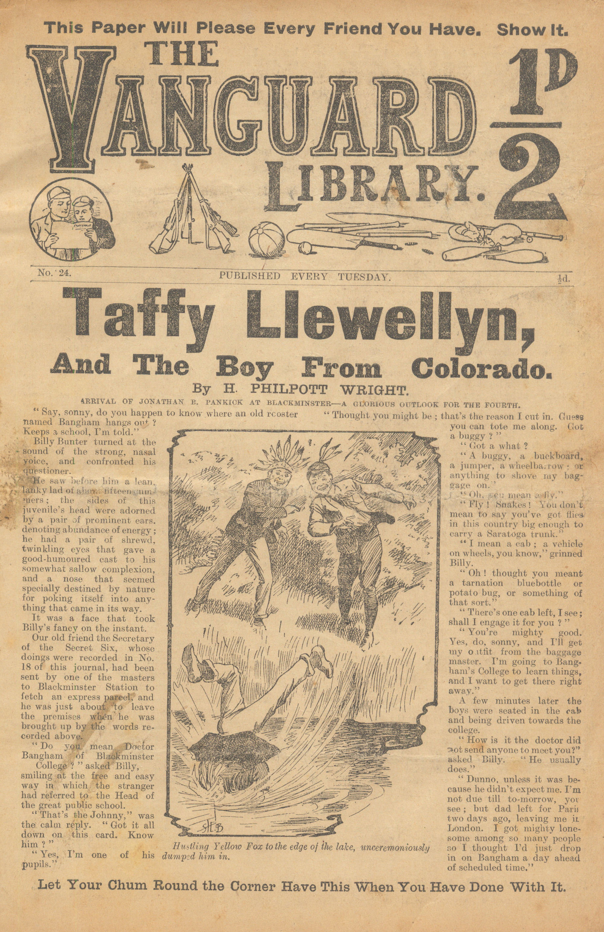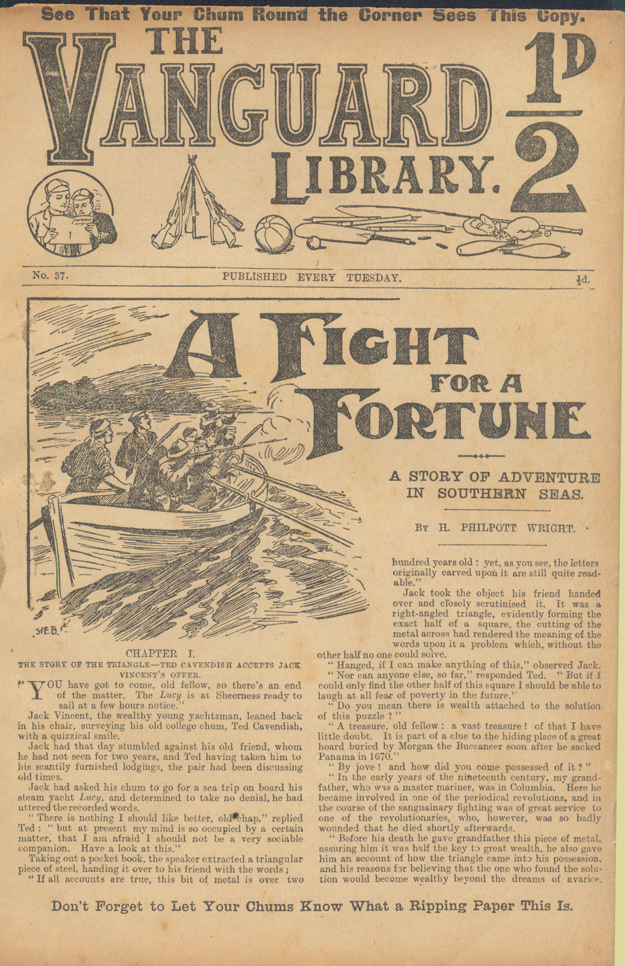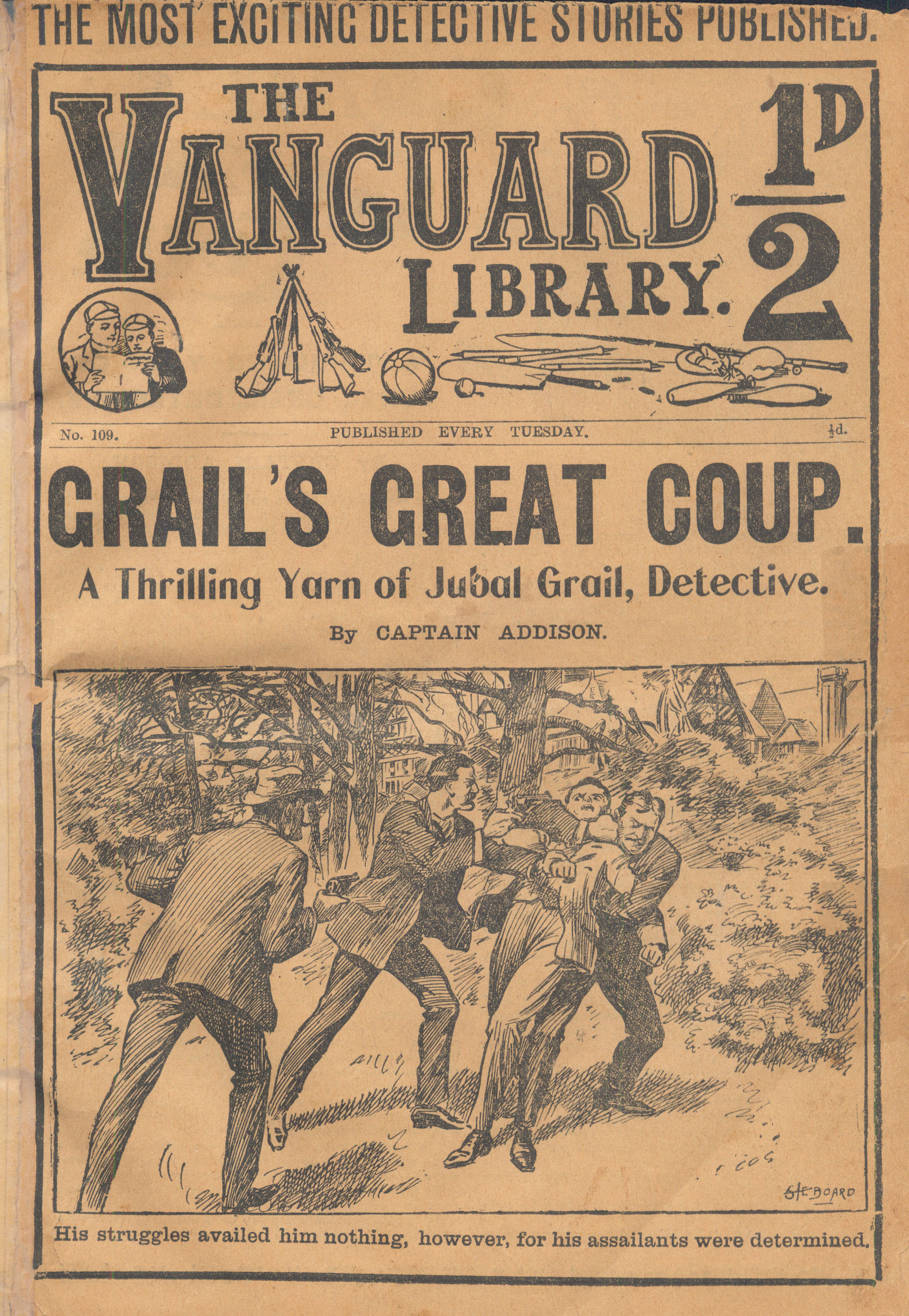 The Vanguard Library was published by Trapps Holmes and ran from May 1907 until April 1910, a total of 152 issues. Issue 137 carried an announcement that the following week the paper would become the Vanguard Library of Football, Sport and Adventure. Issue 138 remains untraced and may not have been published. Issue 139-153 were published in tabloid format. You would have to assume that the new format was not a success as 153 was the final issue. The short lived Old Boys Book Collector carried a couple of interesting articles on the Vanguard Library. In Issue 1 the publication's creator Tom Hopperton wrote an article on the Vanguard Library which managed to annoy Hamilton - Issue 2 contained Hamilton's response! One interesting fact emerged in Hamilton's reply - it was previously thought that only a dozen or so Hamilton stories had appeared in Trapps Holmes publications but in his reply he states that the number was at least a thousand. Allan S and John L have been researching the Trapps Holmes publications and their findings are recorded in the Hamilton Bibliography. Copies of this paper (in fact all Trapps Holmes publications) are very difficult to obtain. The paper doesn't age well and is very brittle so perhaps that is why we don't see many issues coming on to the market today. If anyone can provide more information on this publication (or indeed in any Trapps Holmes publication) please contact me. A few issues of the Vanguard Library are available for download. If you have any issues you would like to share then please contact me. A number of Hamilton stories were reprinted in the Picture Fun The following list was kindly supplied by Dr Nandu Thalange. |